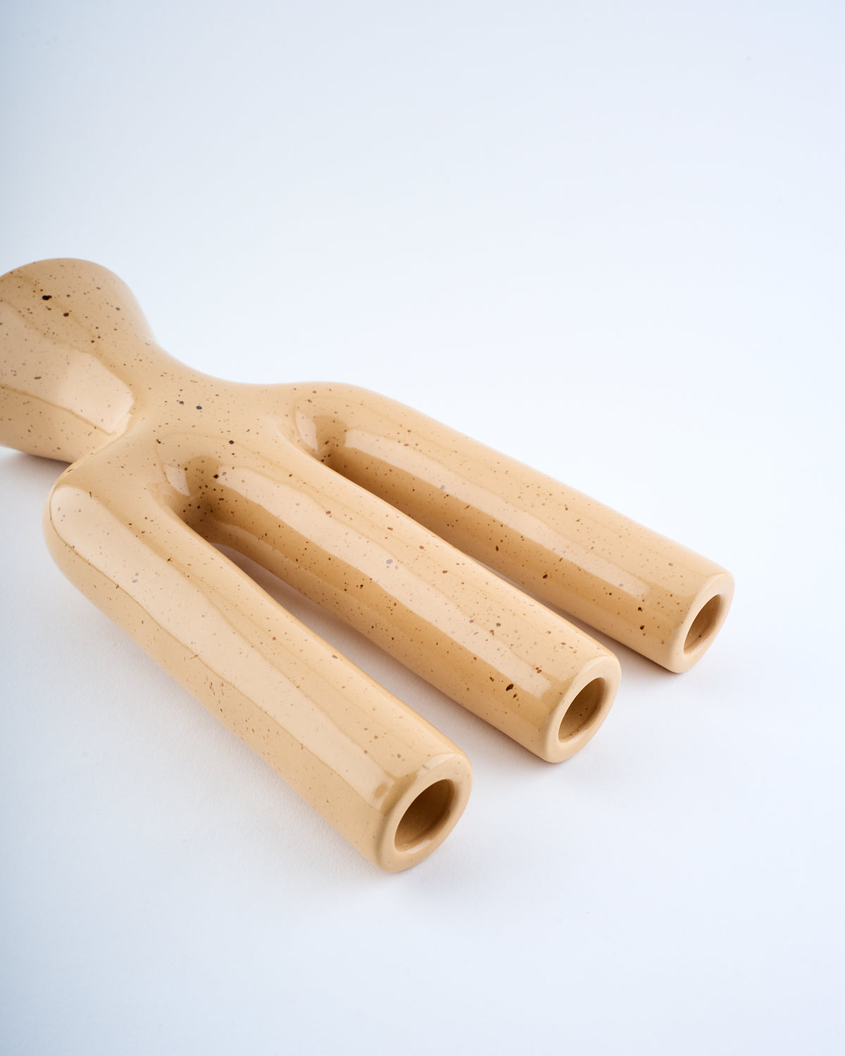 A handcrafted ceramic candle stand that holds up to three candles, bringing a balanced touch to your decor.