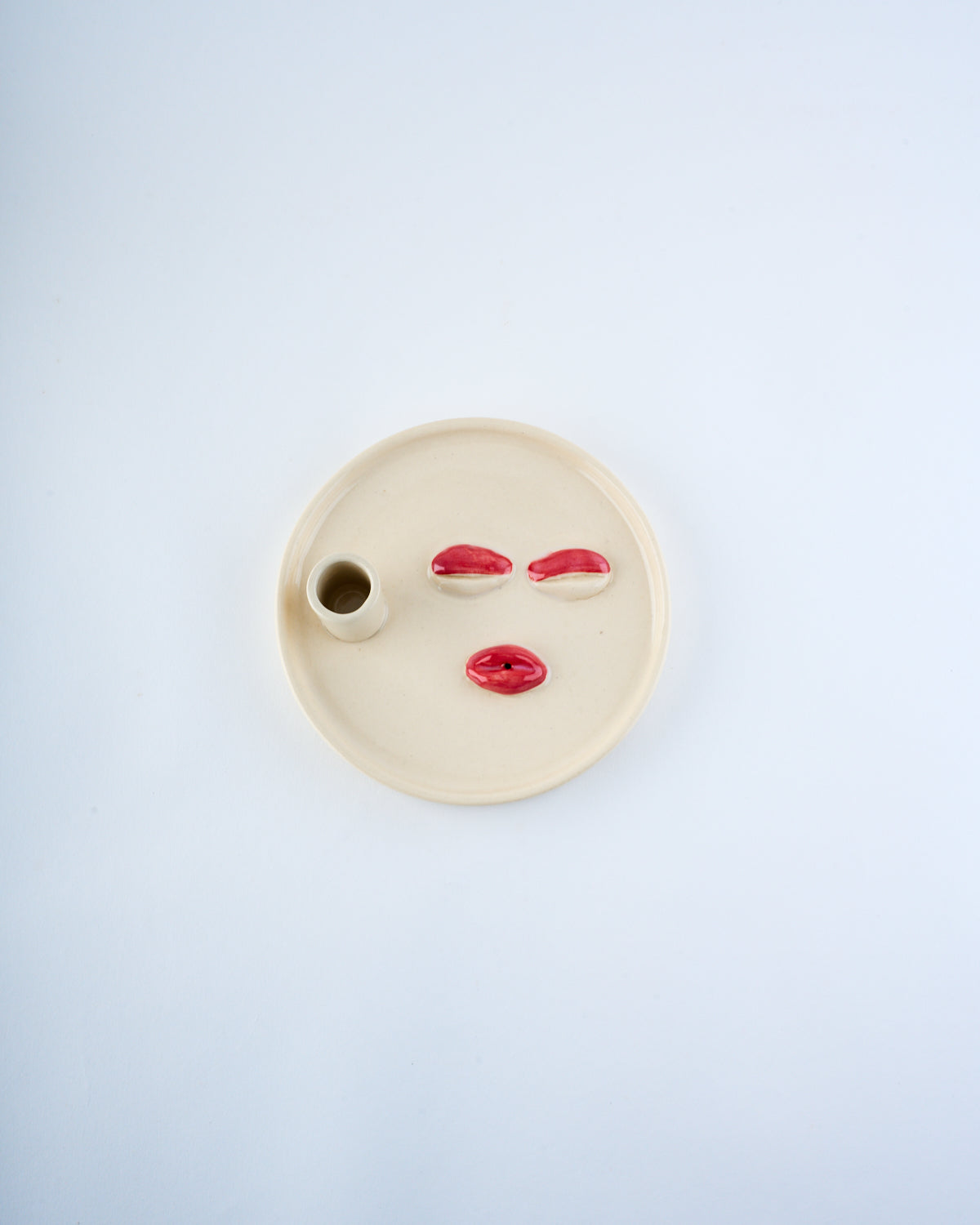 A quirky ceramic tray, ready to hold candles, incense, or simply brighten up your space.