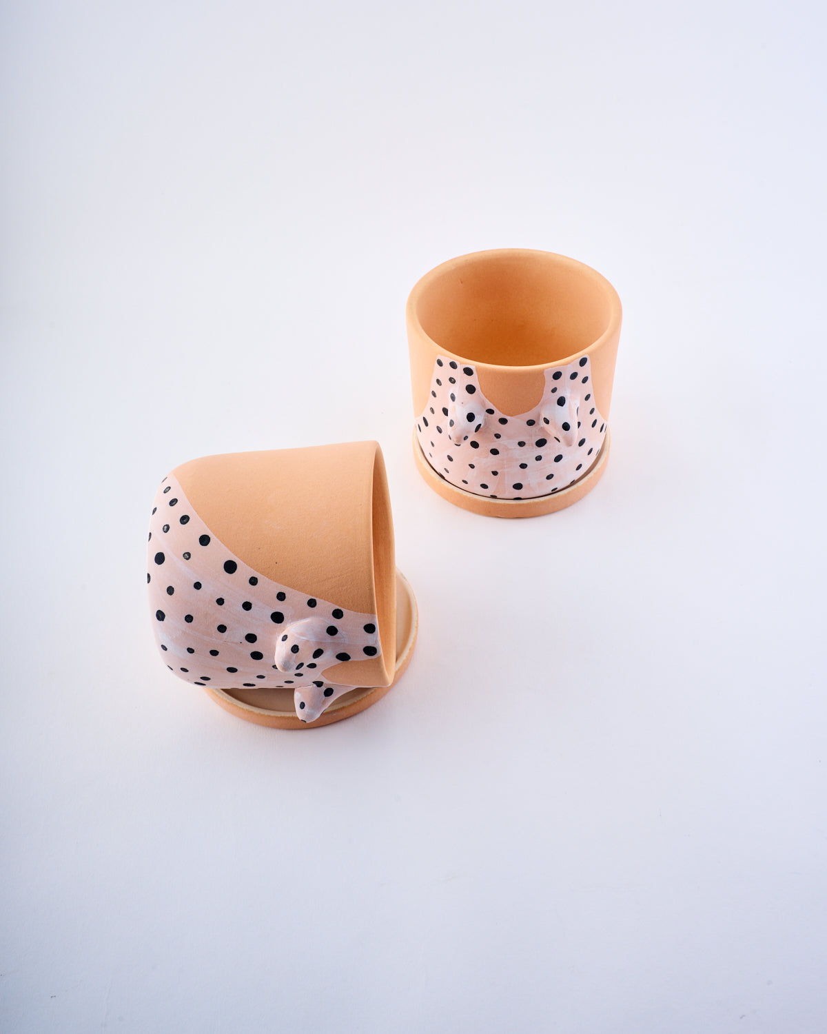 Handcrafted 5-inch indoor planter with a matching tray, ideal for small plants or succulents.